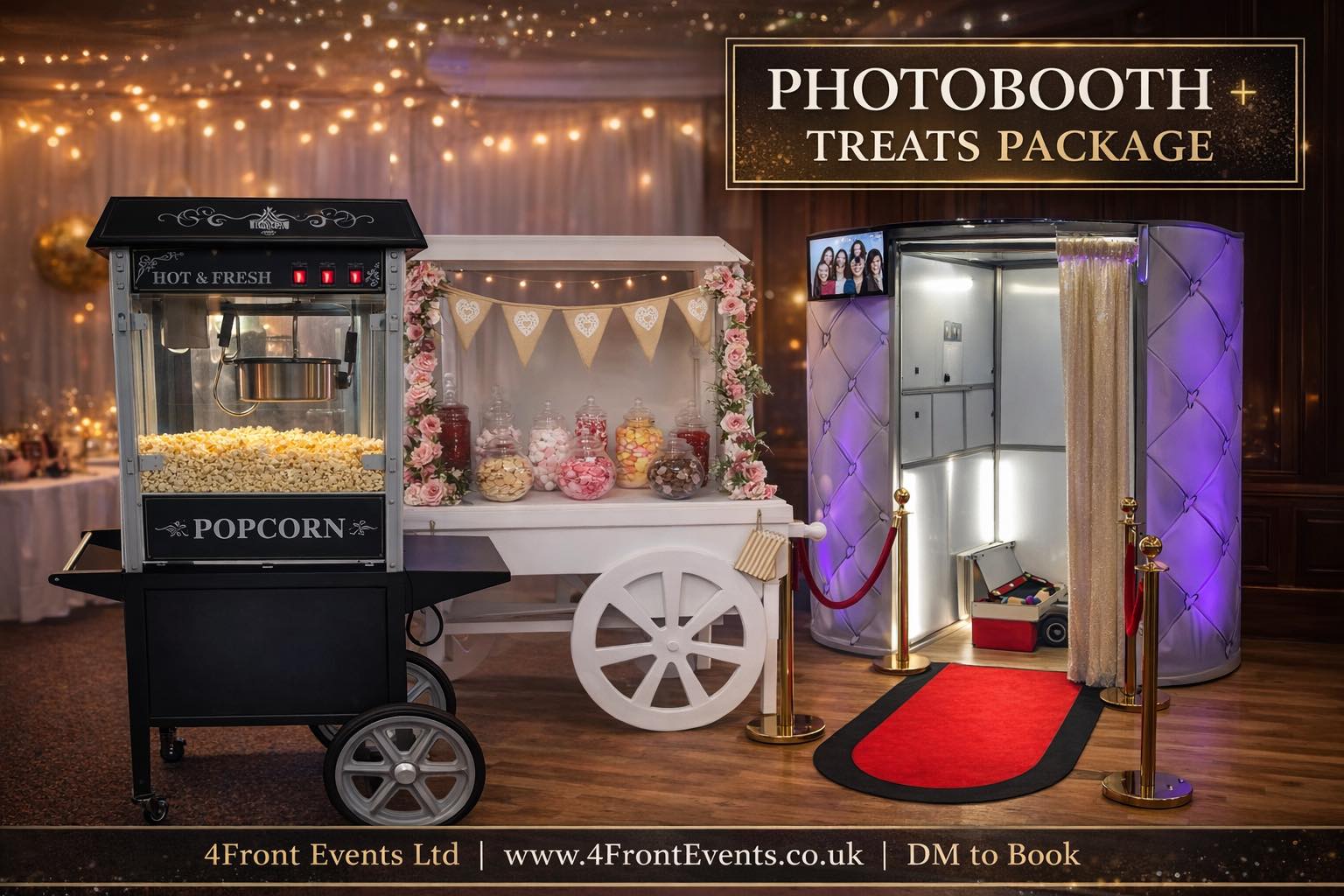 I would like to thank all the staff at 4front events for making our wedding look beautiful we hired the twinkle backdrop and the Mr & Mrs led lights and also the Photo Booth and sweet cart which everyone loved! All the staff on the night was amazing and polite we couldn't thank them enough, I would highly recommend this company for any events, I will be definitely using them again